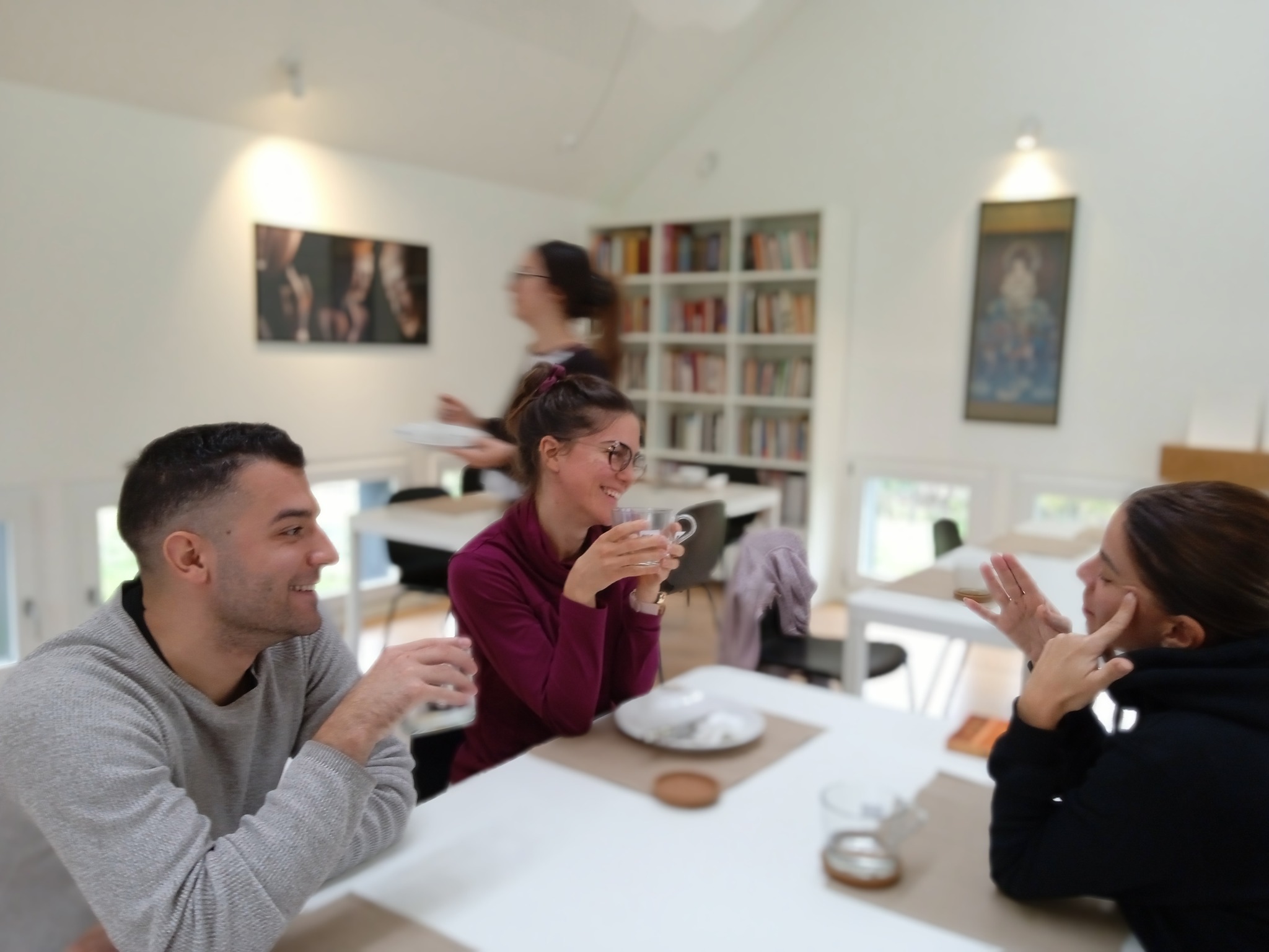 Dan je strukturiran vrlo otvoreno, ostavljajući dovoljno prostora za vaš vlastiti ritam. Zajednički počinjemo jutro meditacijom u sjedenju i pojanjem, nakon čega slijedi pomni rad, odlazak u šumu i poslijepodnevni studij. No možda je najdragocjeniji dio onaj koji ostavljamo vama – osobno, nestrukturirano vrijeme koje možete posvetiti čitanju, pisanju, šetnji, vježbanju, dodatnoj meditaciji… ili jednostavno predahnuti i odmoriti se.